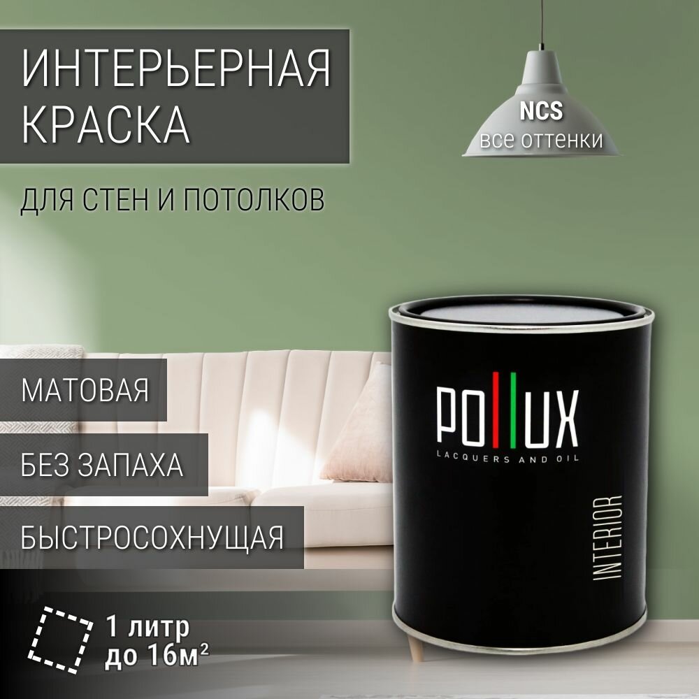 Краска моющаяся интерьерная для стен и потолков, Pollux INTERIOR без запаха, быстросохнущая, акриловая, матовое покрытие, цвет NCS S 3020-G30Y, 1л. информация: