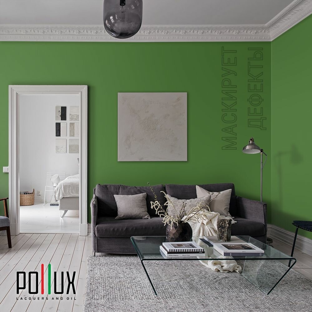 Отзывы на Краска моющаяся интерьерная для стен и потолков, Pollux INTERIOR без запаха, быстросохнущая, акриловая, матовое покрытие, цвет NCS S 4050-G30Y, 5л.
