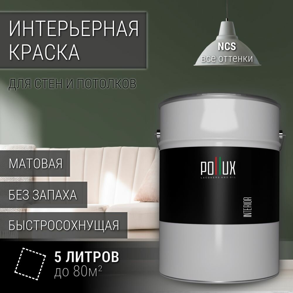 Краска моющаяся интерьерная для стен и потолков, Pollux INTERIOR без запаха, быстросохнущая, акриловая, матовое покрытие, цвет NCS S 7020-G30Y, 5л. 12 385 ₽