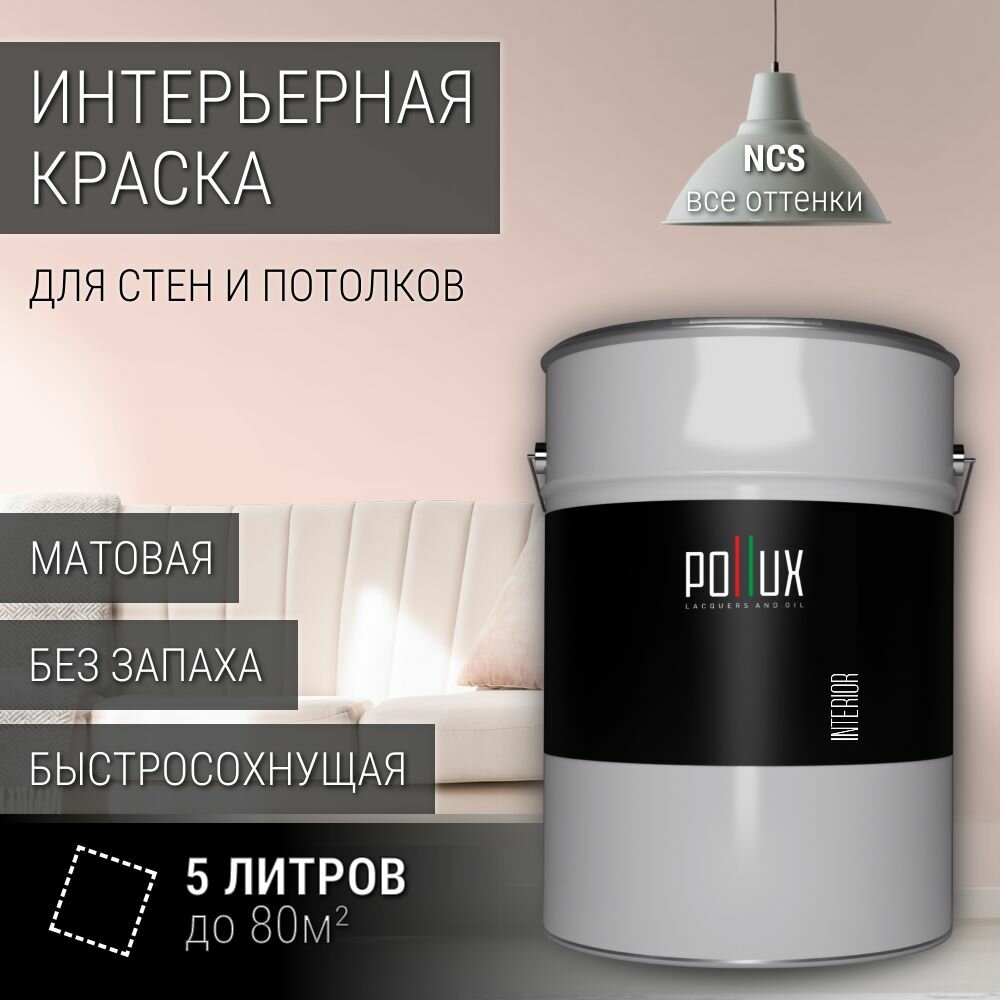 Краска моющаяся интерьерная для стен и потолков, Pollux INTERIOR без запаха, быстросохнущая, акриловая, матовое покрытие, цвет NCS S 0510-Y90R, 5л. информация: