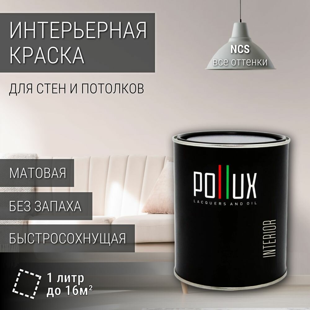 10 цен на Краска моющаяся интерьерная для стен и потолков, Pollux INTERIOR без запаха, быстросохнущая, акриловая, матовое покрытие, цвет NCS S 0804-Y90R, 1л.