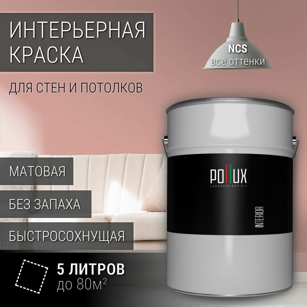 Краска моющаяся интерьерная для стен и потолков, Pollux INTERIOR без запаха, быстросохнущая, акриловая, матовое покрытие, цвет NCS S 2020-Y90R, 5л. информация: