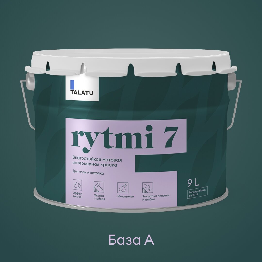 Краска для стен и потолков влагостойкая матовая TALATU RYTMI 7 база A 9,0 л информация: