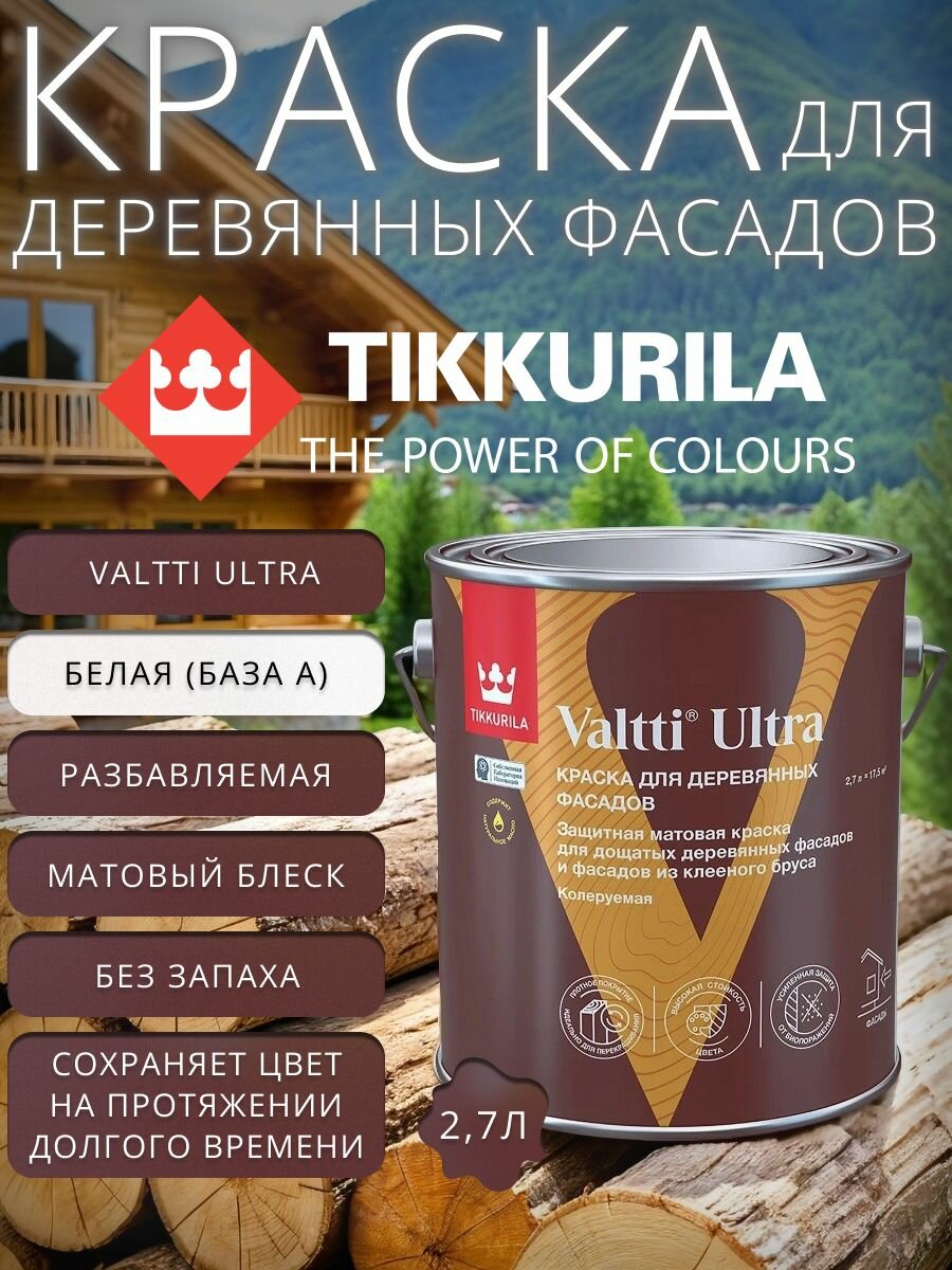 Отзывы на Краска для деревянных фасадов Tikkurila Valtti Ultra база А белая 2.7 л / Тиккурила Валти Ультра фасадная краска