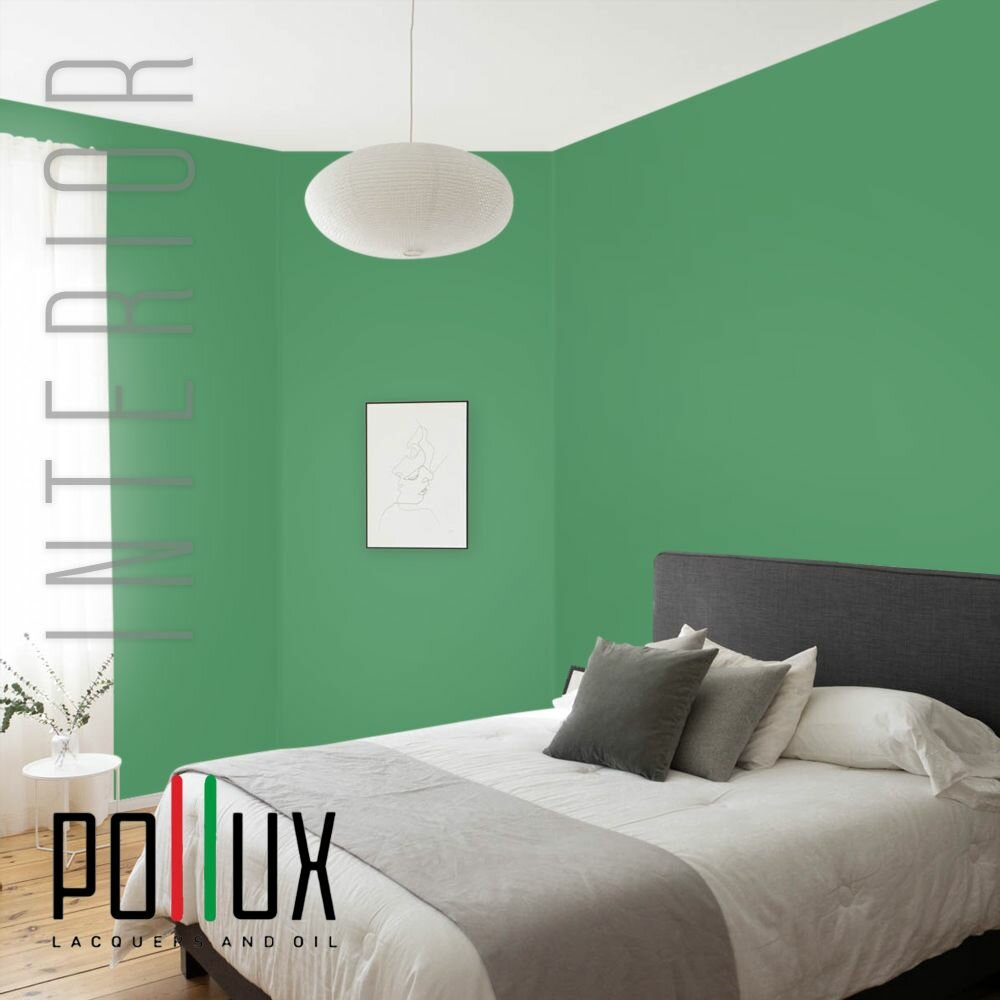 Краска моющаяся интерьерная для стен и потолков, Pollux INTERIOR без запаха, быстросохнущая, акриловая, матовое покрытие, цвет NCS S 3040-G10Y, 1л. информация: