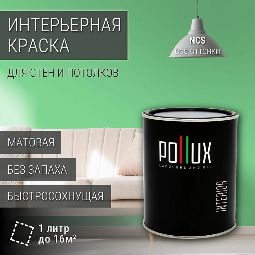 Краска моющаяся интерьерная для стен и потолков, Pollux INTERIOR без запаха, быстросохнущая, акриловая, матовое покрытие, цвет NCS S 6530-G10Y, 1л. 2 535 ₽