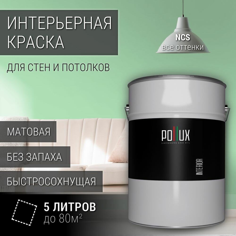 Краска моющаяся интерьерная для стен и потолков, Pollux INTERIOR без запаха, быстросохнущая, акриловая, матовое покрытие, цвет NCS S 0530-G10Y, 5л. информация: