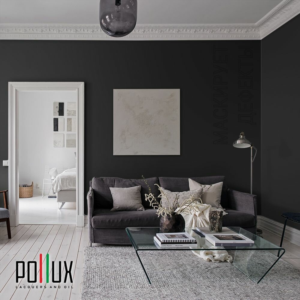Краска моющаяся интерьерная для стен и потолков, Pollux INTERIOR без запаха, быстросохнущая, акриловая, матовое покрытие, цвет NCS S 9000-N, 1л. информация: