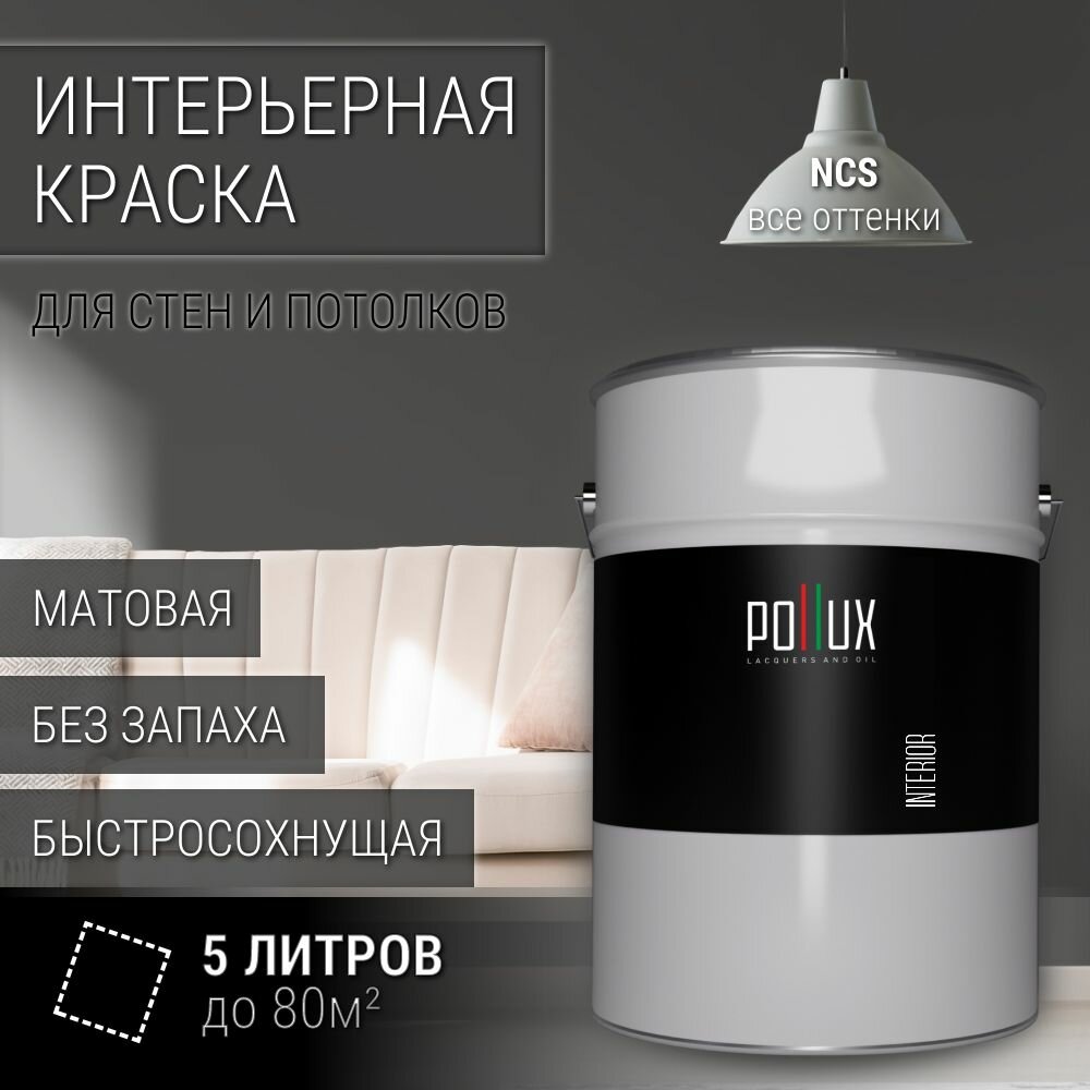Краска моющаяся интерьерная для стен и потолков, Pollux INTERIOR без запаха, быстросохнущая, акриловая, матовое покрытие, цвет NCS S 7500-N, 5л. информация: