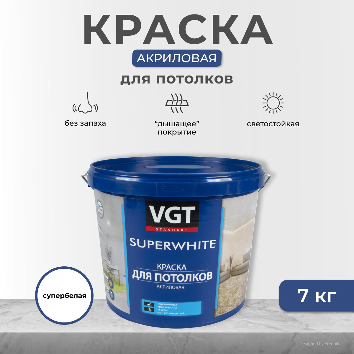 Краска для Потолков VGT Superwhite ВД-АК-2180 7кг Акриловая, Супербелая / ВГТ. 1 070 ₽