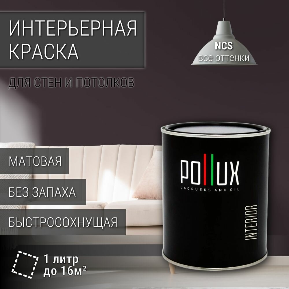 Краска моющаяся интерьерная для стен и потолков, Pollux INTERIOR без запаха, быстросохнущая, акриловая, матовое покрытие, цвет NCS S 7020-R20B, 1л. 2 535 ₽