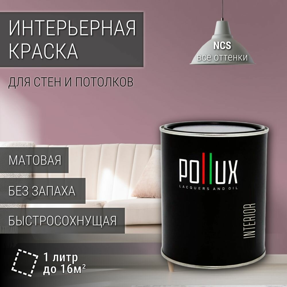 Краска моющаяся интерьерная для стен и потолков, Pollux INTERIOR без запаха, быстросохнущая, акриловая, матовое покрытие, цвет NCS S 3020-R20B, 1л. информация: