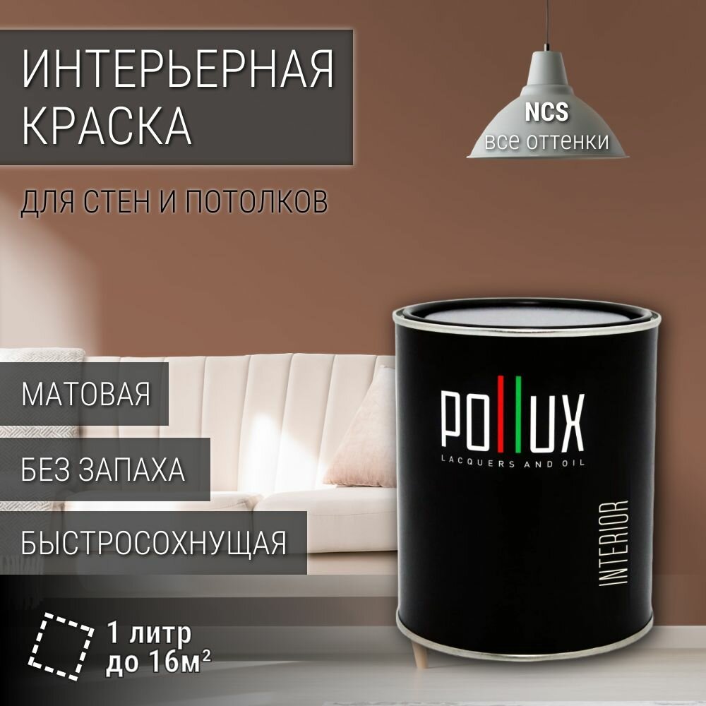Краска моющаяся интерьерная для стен и потолков, Pollux INTERIOR без запаха, быстросохнущая, акриловая, матовое покрытие, цвет NCS S 3040-Y60R, 1л. 2 535 ₽