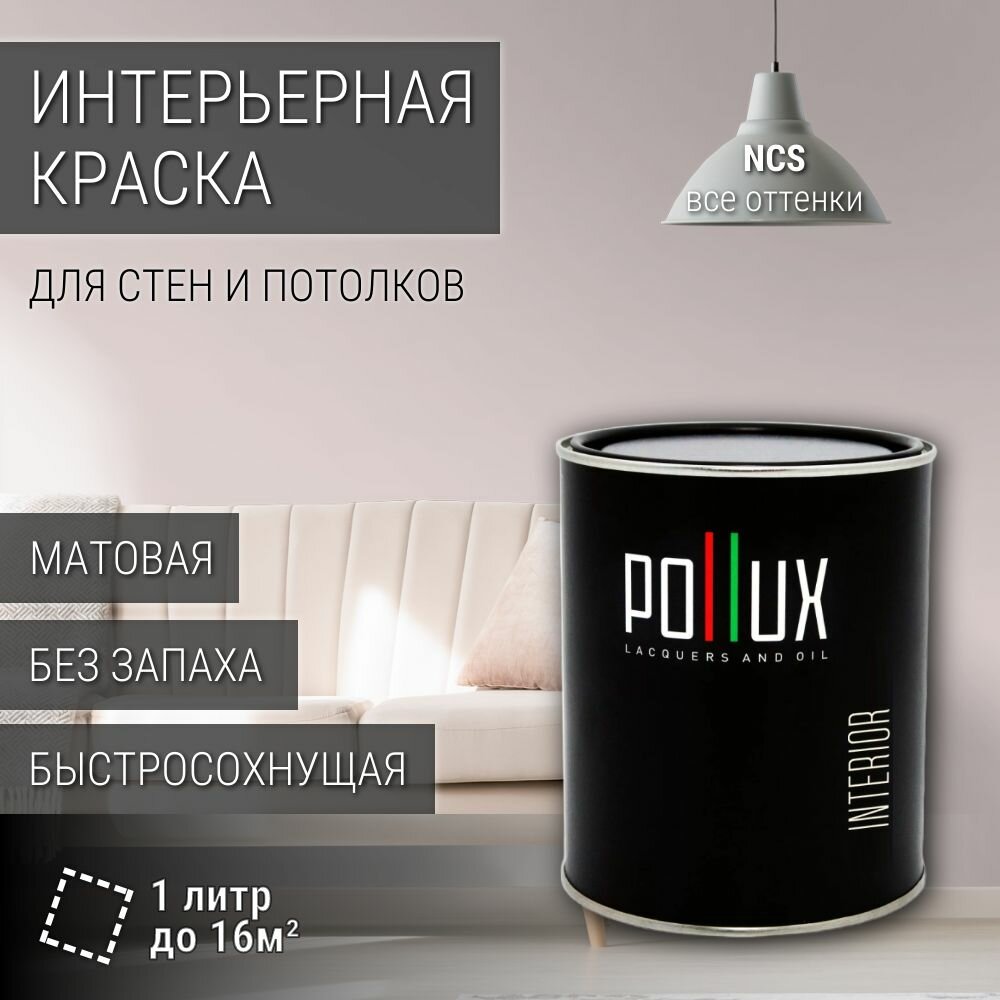 Краска моющаяся интерьерная для стен и потолков, Pollux INTERIOR без запаха, быстросохнущая, акриловая, матовое покрытие, цвет NCS S 1005-R, 1л. информация:
