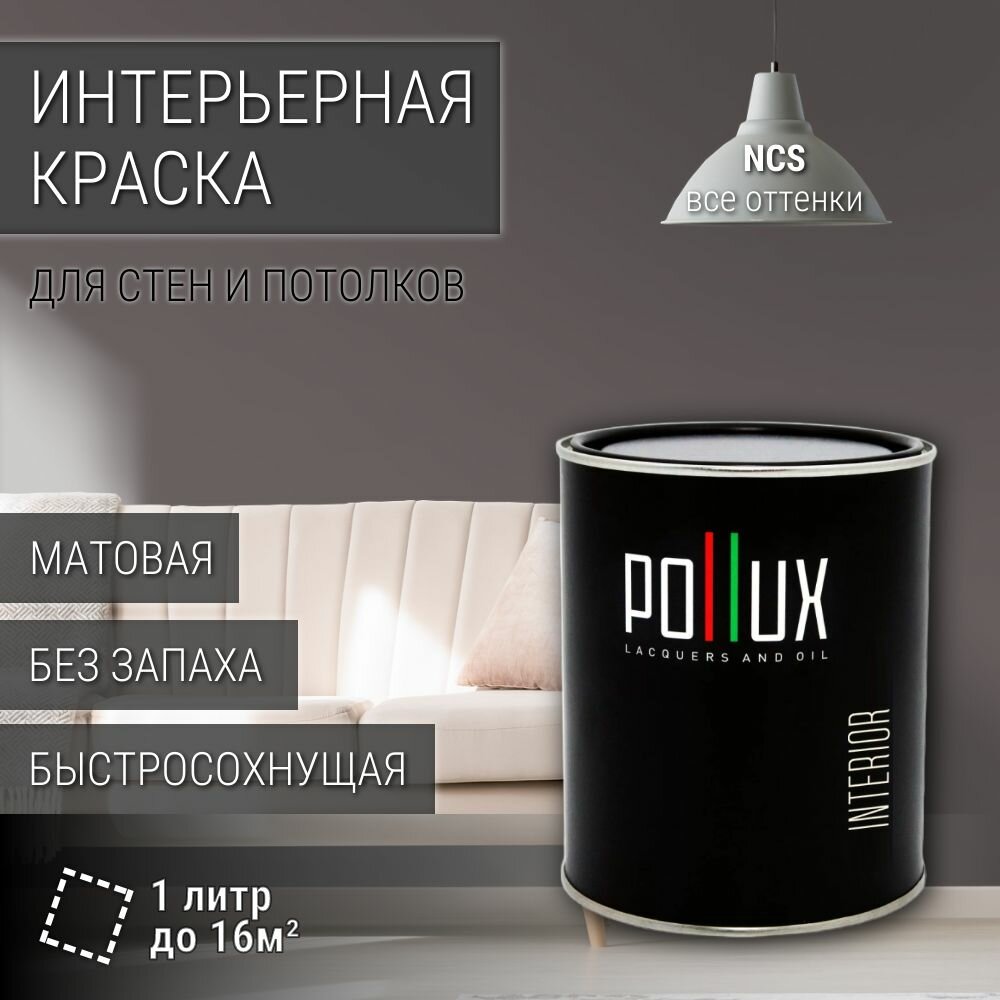 Краска моющаяся интерьерная для стен и потолков, Pollux INTERIOR без запаха, быстросохнущая, акриловая, матовое покрытие, цвет NCS S 6502-R, 1л. информация: