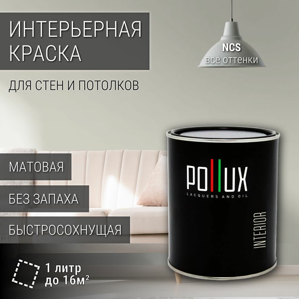 Краска моющаяся интерьерная для стен и потолков, Pollux INTERIOR без запаха, быстросохнущая, акриловая, матовое покрытие, цвет NCS S 1502-Y, 1л. информация:
