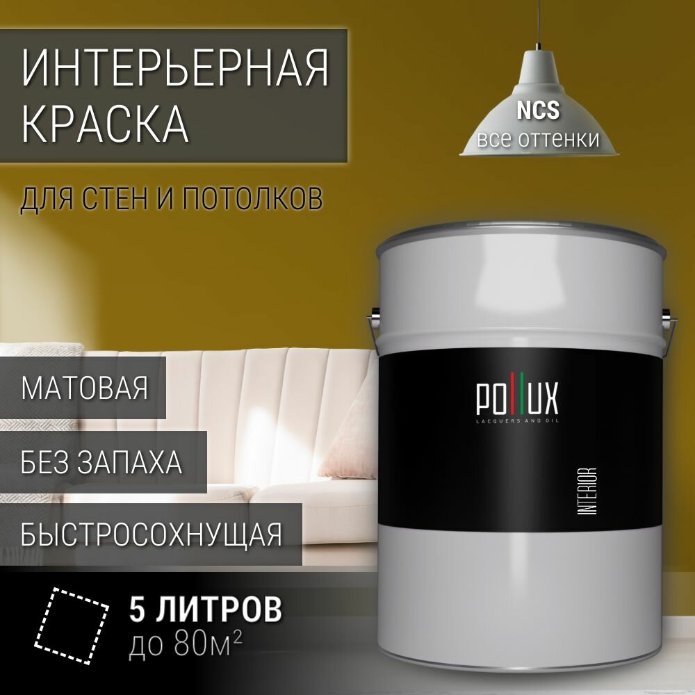 Краска моющаяся интерьерная для стен и потолков, Pollux INTERIOR без запаха, быстросохнущая, акриловая, матовое покрытие, цвет NCS S 4550-Y, 5л. информация: