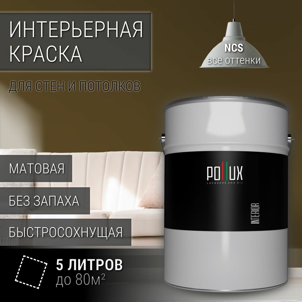 Краска моющаяся интерьерная для стен и потолков, Pollux INTERIOR без запаха, быстросохнущая, акриловая, матовое покрытие, цвет NCS S 7020-Y, 5л. информация: