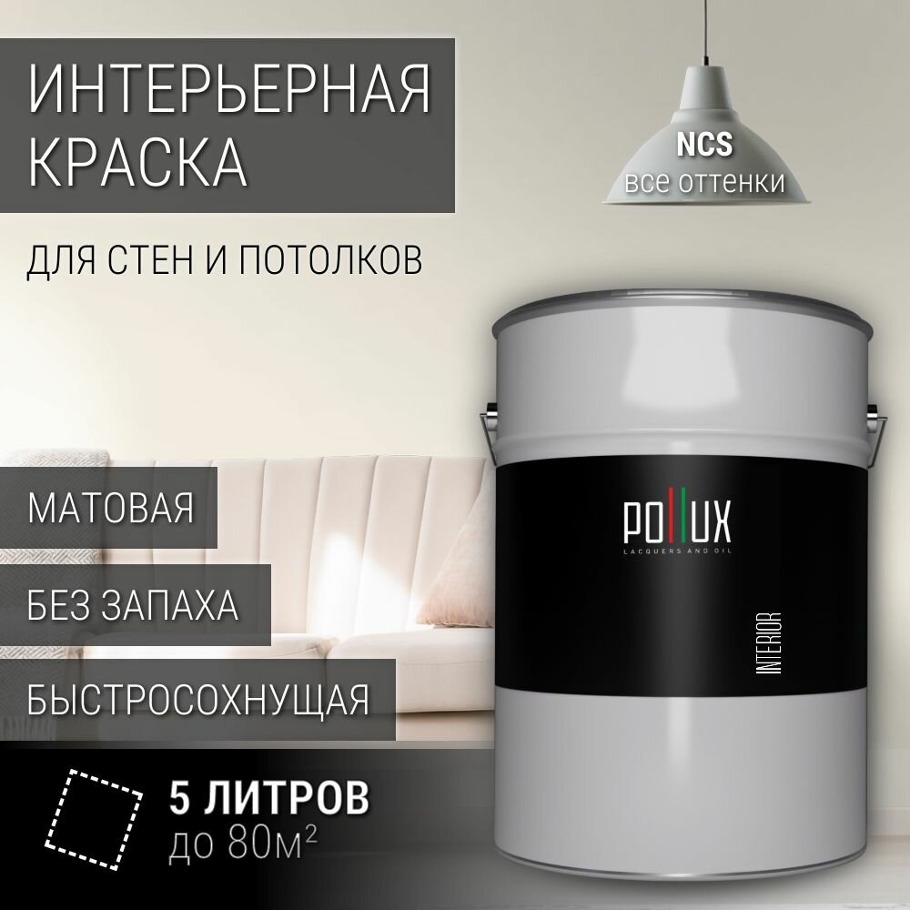 Краска моющаяся интерьерная для стен и потолков, Pollux INTERIOR без запаха, быстросохнущая, акриловая, матовое покрытие, цвет NCS S 7020-Y, 5л. 12 385 ₽