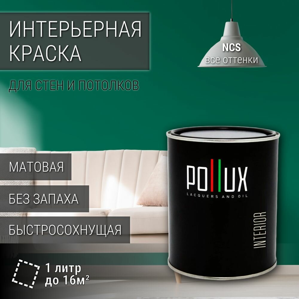 Краска моющаяся интерьерная для стен и потолков, Pollux INTERIOR без запаха, быстросохнущая, акриловая, матовое покрытие, цвет NCS S 4050-B90G, 1л. информация: