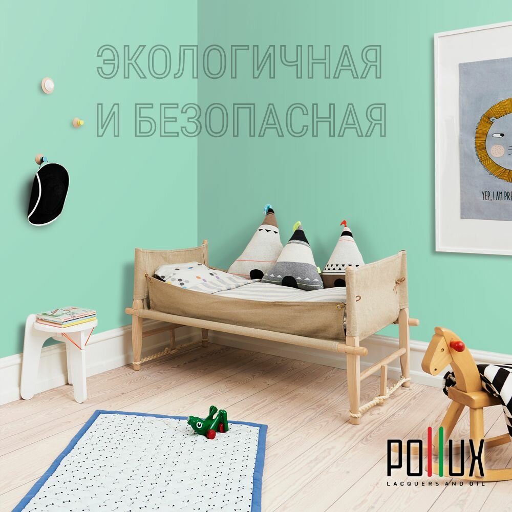 Краска моющаяся интерьерная для стен и потолков, Pollux INTERIOR без запаха, быстросохнущая, акриловая, матовое покрытие, цвет NCS S 1030-B90G, 1л. информация: