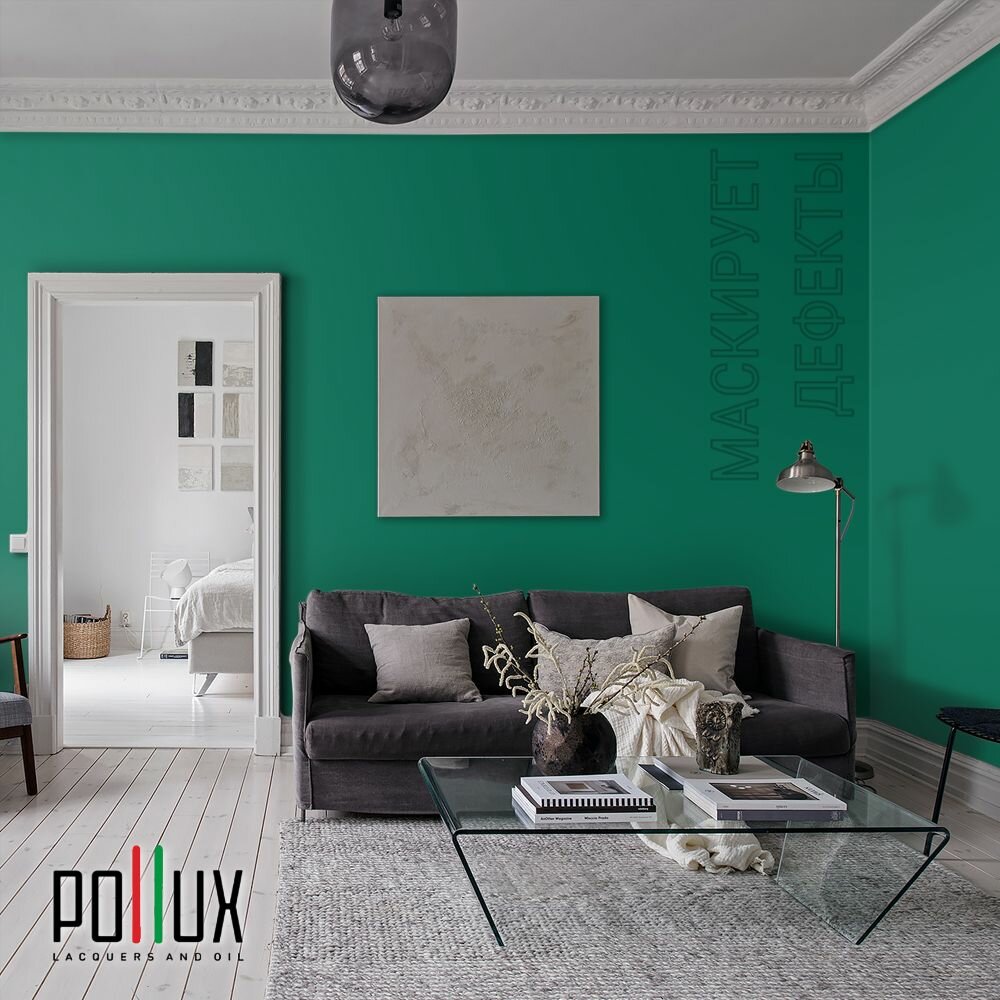 Краска моющаяся интерьерная для стен и потолков, Pollux INTERIOR без запаха, быстросохнущая, акриловая, матовое покрытие, цвет NCS S 6030-B90G, 1л. 2 535 ₽