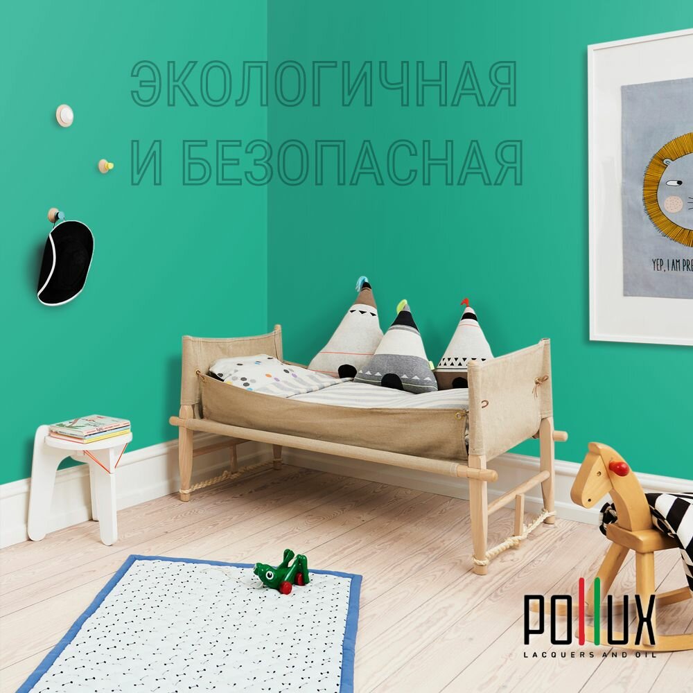 Краска моющаяся интерьерная для стен и потолков, Pollux INTERIOR без запаха, быстросохнущая, акриловая, матовое покрытие, цвет NCS S 6030-B90G, 1л. 2 535 ₽