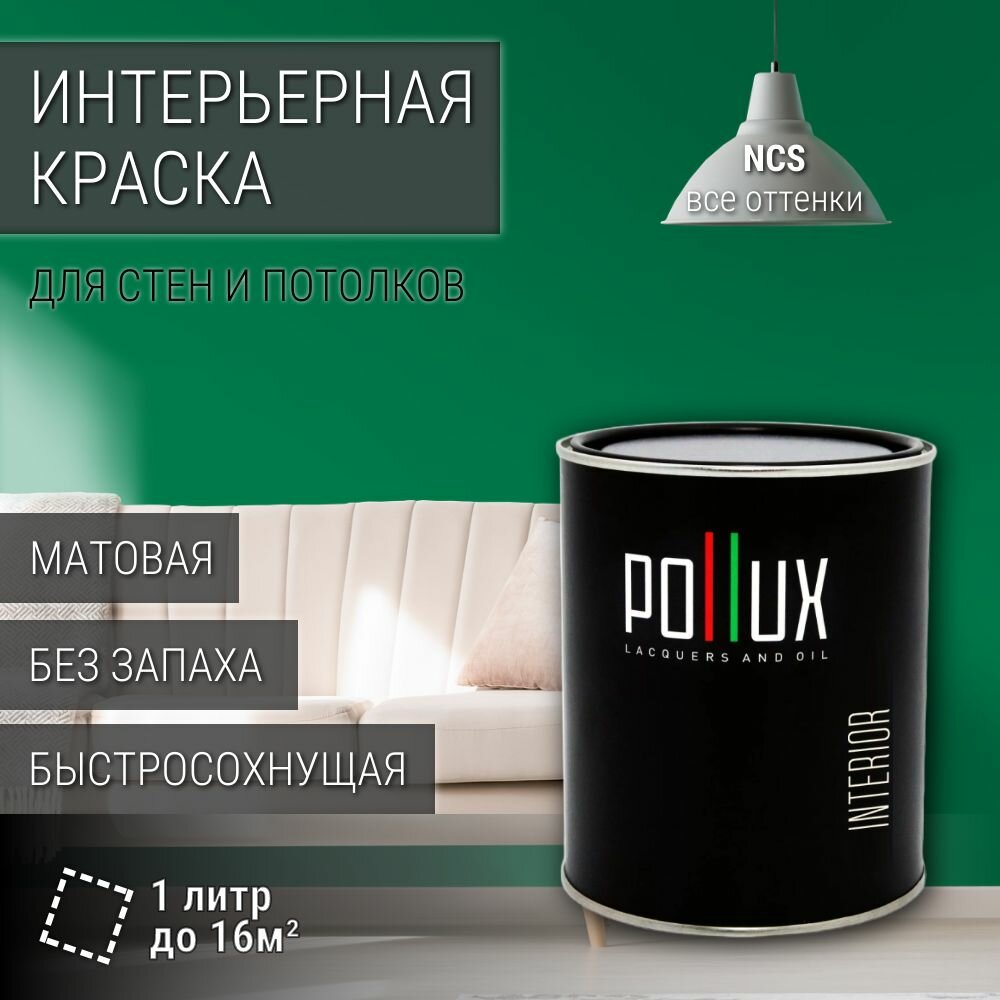 Краска моющаяся интерьерная для стен и потолков, Pollux INTERIOR без запаха, быстросохнущая, акриловая, матовое покрытие, цвет NCS S 3060-G, 1л. информация: