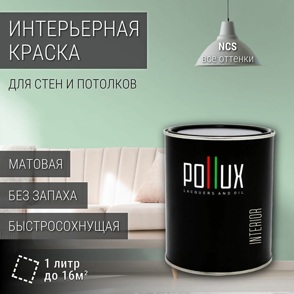 Краска моющаяся интерьерная для стен и потолков, Pollux INTERIOR без запаха, быстросохнущая, акриловая, матовое покрытие, цвет NCS S 1030-G, 1л.