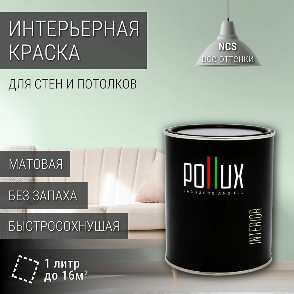 Краска моющаяся интерьерная для стен и потолков, Pollux INTERIOR без запаха, быстросохнущая, акриловая, матовое покрытие, цвет NCS S 1030-G, 1л.