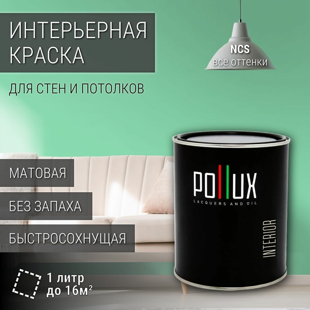 Краска моющаяся интерьерная для стен и потолков, Pollux INTERIOR без запаха, быстросохнущая, акриловая, матовое покрытие, цвет NCS S 0540-G, 1л. информация:
