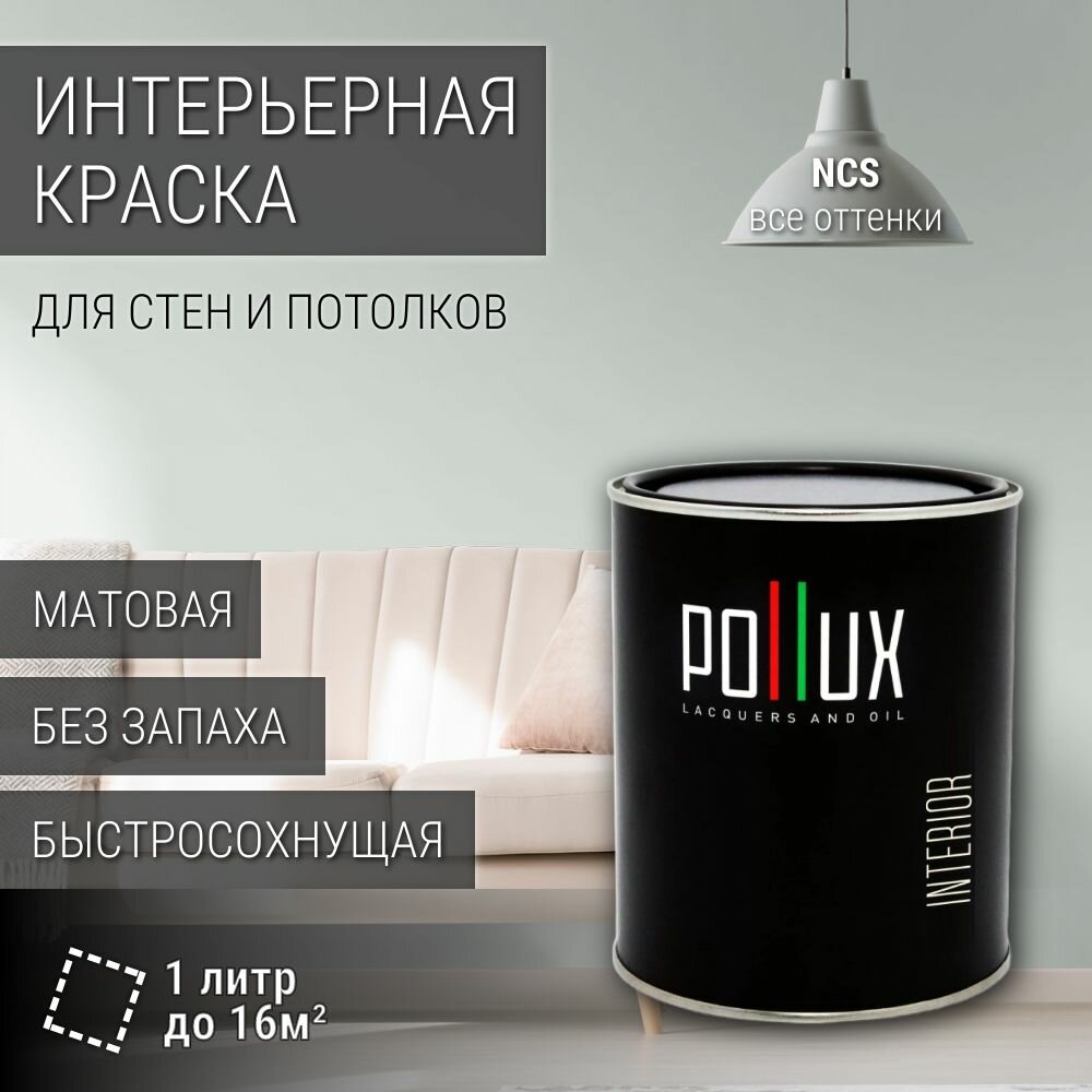 Краска моющаяся интерьерная для стен и потолков, Pollux INTERIOR без запаха, быстросохнущая, акриловая, матовое покрытие, цвет NCS S 1030-G, 1л.