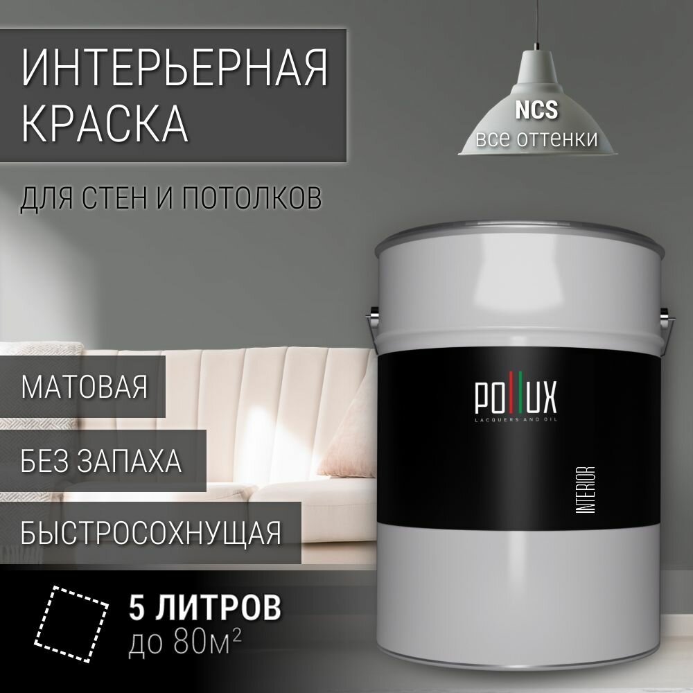 Краска моющаяся интерьерная для стен и потолков, Pollux INTERIOR без запаха, быстросохнущая, акриловая, матовое покрытие, цвет NCS S 8502-G, 5л. 12 385 ₽