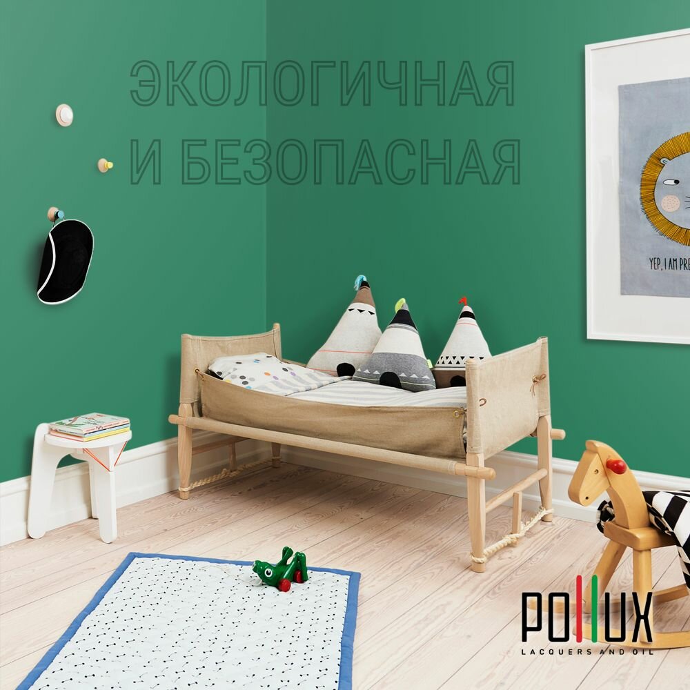 Краска моющаяся интерьерная для стен и потолков, Pollux INTERIOR без запаха, быстросохнущая, акриловая, матовое покрытие, цвет NCS S 1030-G, 1л.