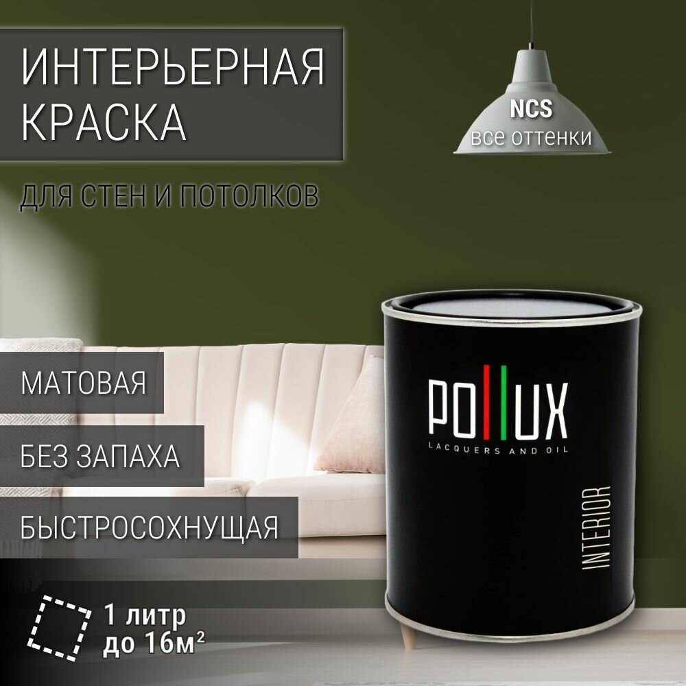 10 цен на Краска моющаяся интерьерная для стен и потолков, Pollux INTERIOR без запаха, быстросохнущая, акриловая, матовое покрытие, цвет NCS S 7020-G50Y, 1л.