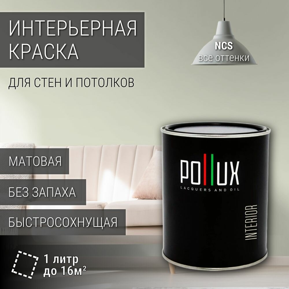 Краска моющаяся интерьерная для стен и потолков, Pollux INTERIOR без запаха, быстросохнущая, акриловая, матовое покрытие, цвет NCS S 6530-G50Y, 1л. 2 535 ₽