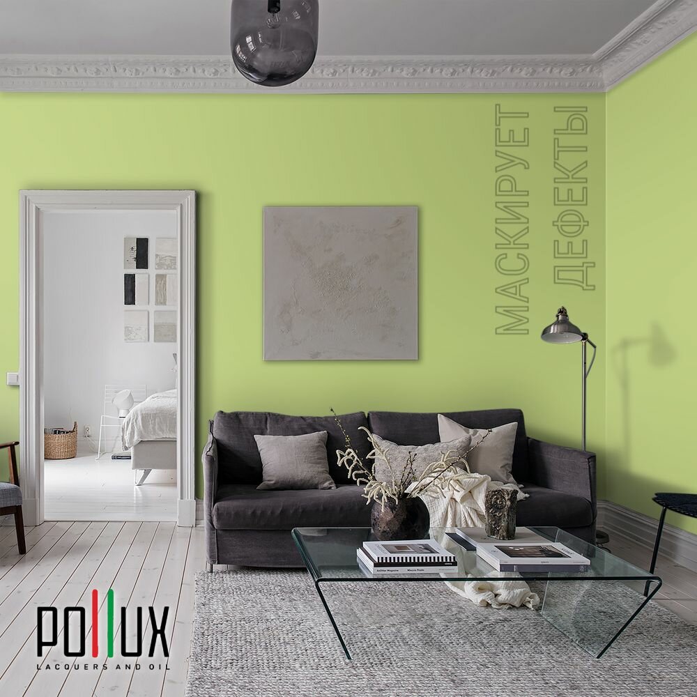 Краска моющаяся интерьерная для стен и потолков, Pollux INTERIOR без запаха, быстросохнущая, акриловая, матовое покрытие, цвет NCS S 1040-G50Y, 1л. информация: