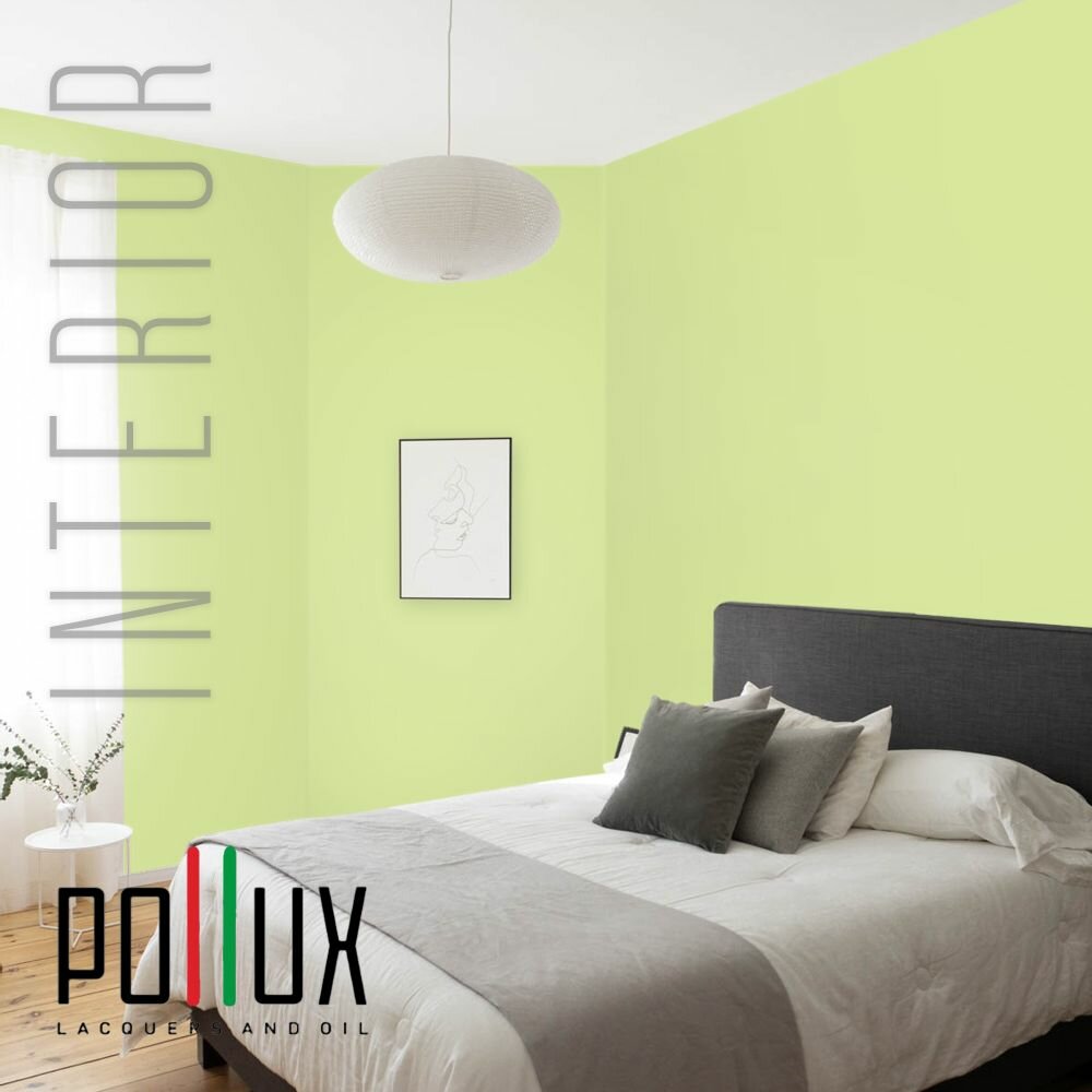 Краска моющаяся интерьерная для стен и потолков, Pollux INTERIOR без запаха, быстросохнущая, акриловая, матовое покрытие, цвет NCS S 0530-G50Y, 5л. информация:
