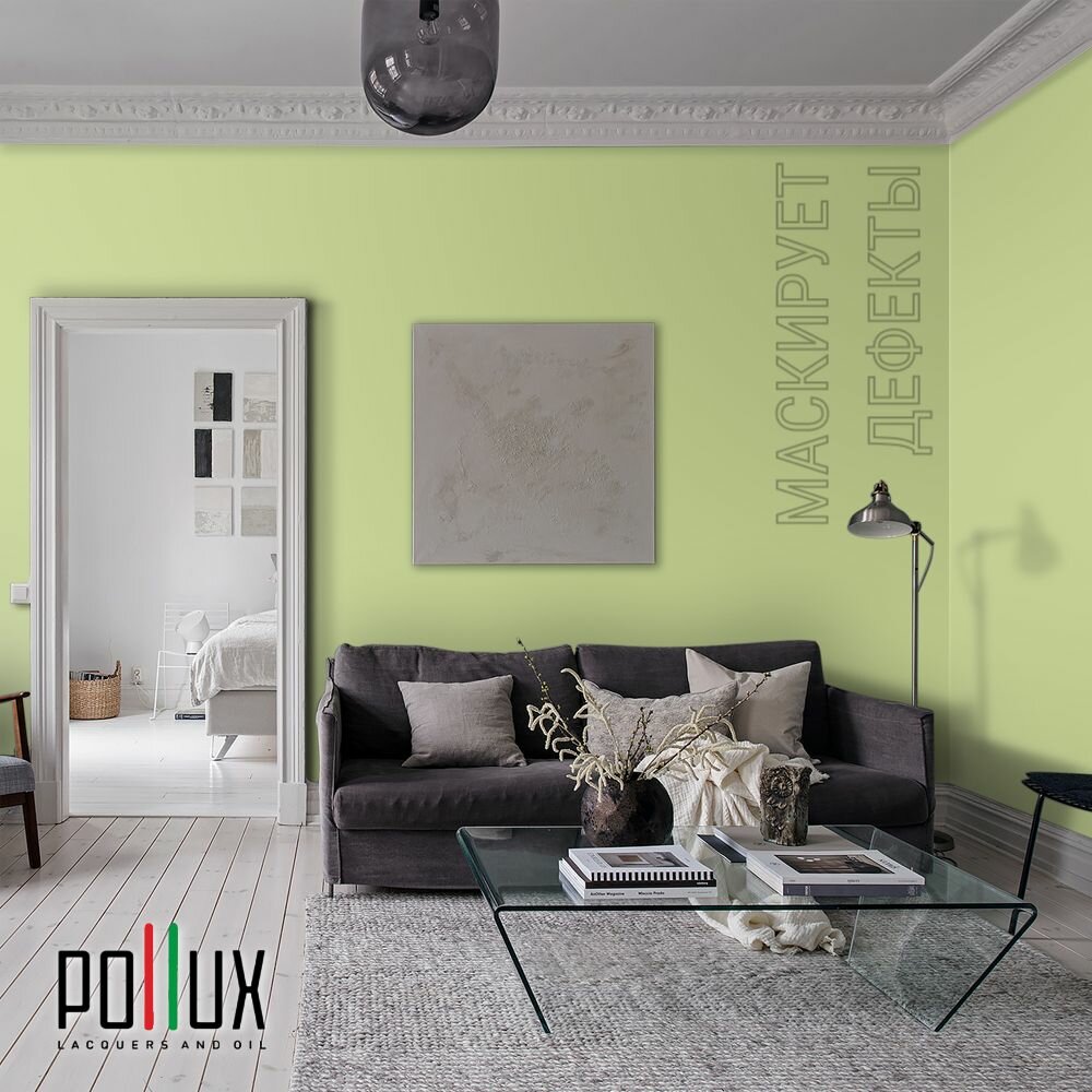 Краска моющаяся интерьерная для стен и потолков, Pollux INTERIOR без запаха, быстросохнущая, акриловая, матовое покрытие, цвет NCS S 6530-G50Y, 1л. 2 535 ₽