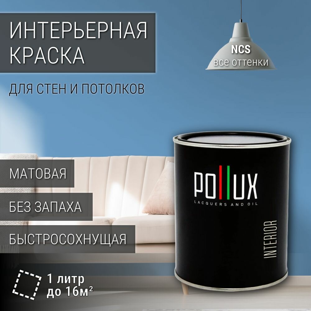 Краска моющаяся интерьерная для стен и потолков, Pollux INTERIOR без запаха, быстросохнущая, акриловая, матовое покрытие, цвет NCS S 2040-R90B, 1л. информация: