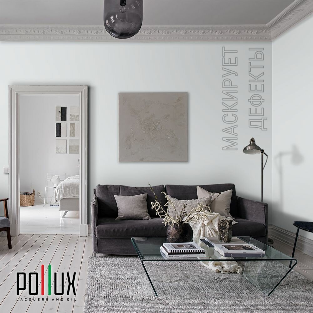 10 цен на Краска моющаяся интерьерная для стен и потолков, Pollux INTERIOR без запаха, быстросохнущая, акриловая, матовое покрытие, цвет NCS S 0804-R90B, 1л.