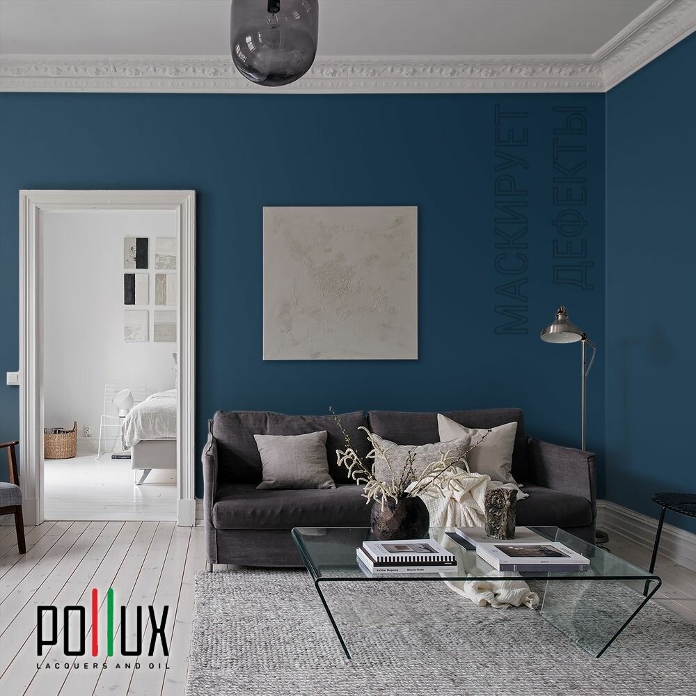 Краска моющаяся интерьерная для стен и потолков, Pollux INTERIOR без запаха, быстросохнущая, акриловая, матовое покрытие, цвет NCS S 4050-R90B, 1л. 2 535 ₽