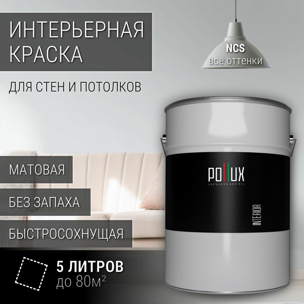 Краска моющаяся интерьерная для стен и потолков, Pollux INTERIOR без запаха, быстросохнущая, акриловая, матовое покрытие, цвет NCS S 0804-R90B, 5л. информация: