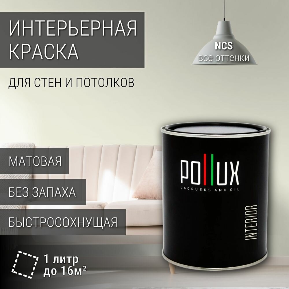Краска моющаяся интерьерная для стен и потолков, Pollux INTERIOR без запаха, быстросохнущая, акриловая, матовое покрытие, цвет NCS S 2020-G70Y, 1л.