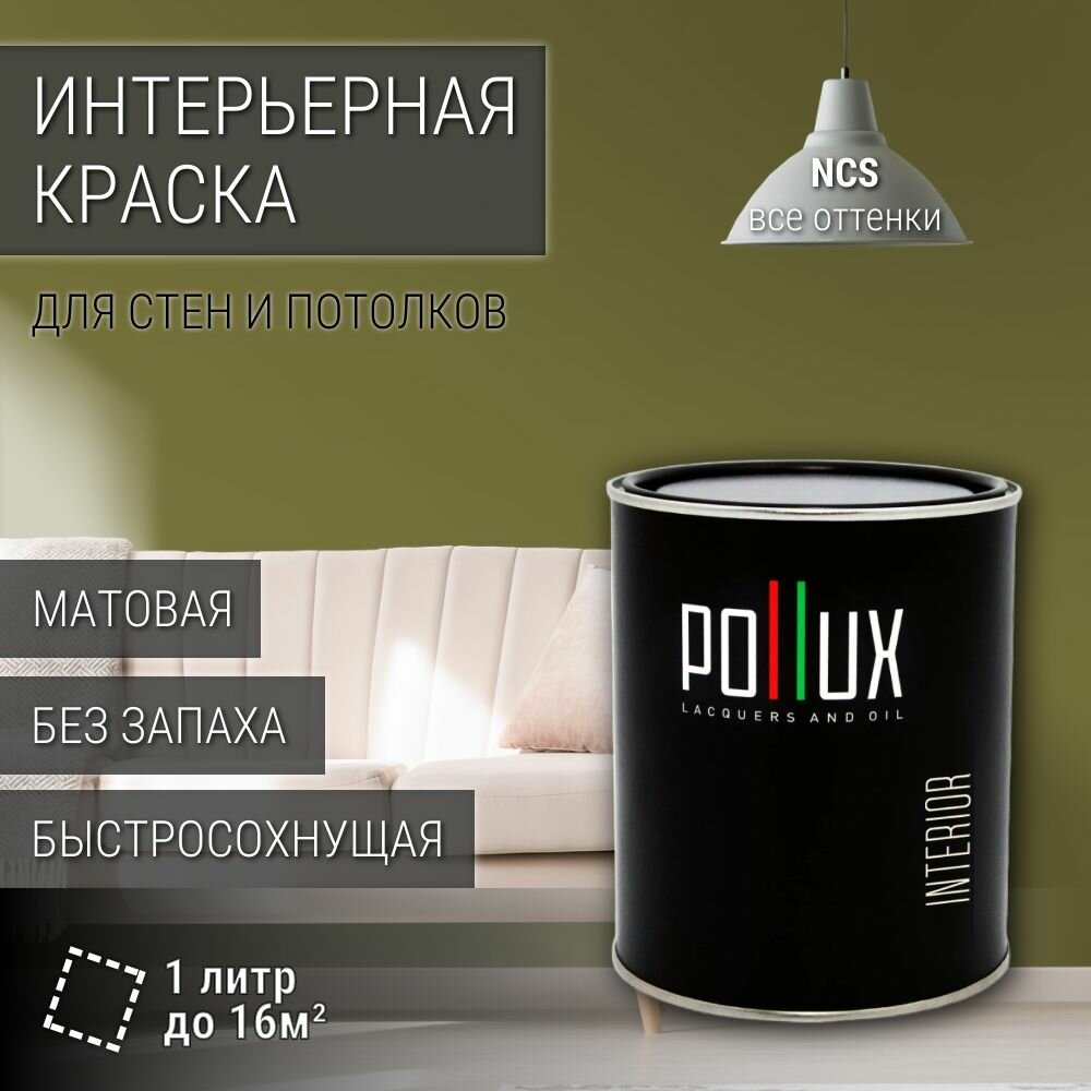 Краска моющаяся интерьерная для стен и потолков, Pollux INTERIOR без запаха, быстросохнущая, акриловая, матовое покрытие, цвет NCS S 2020-G70Y, 1л.