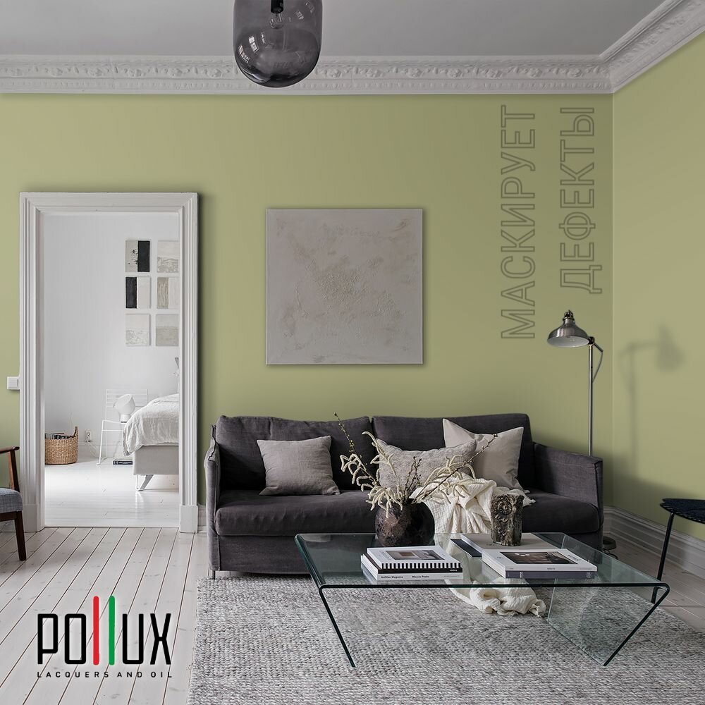 Краска моющаяся интерьерная для стен и потолков, Pollux INTERIOR без запаха, быстросохнущая, акриловая, матовое покрытие, цвет NCS S 3020-G70Y, 1л. информация: