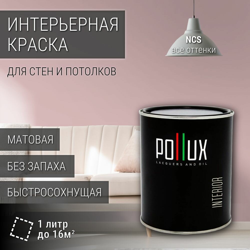 Краска моющаяся интерьерная для стен и потолков, Pollux INTERIOR без запаха, быстросохнущая, акриловая, матовое покрытие, цвет NCS S 1515-R10B, 1л. информация: