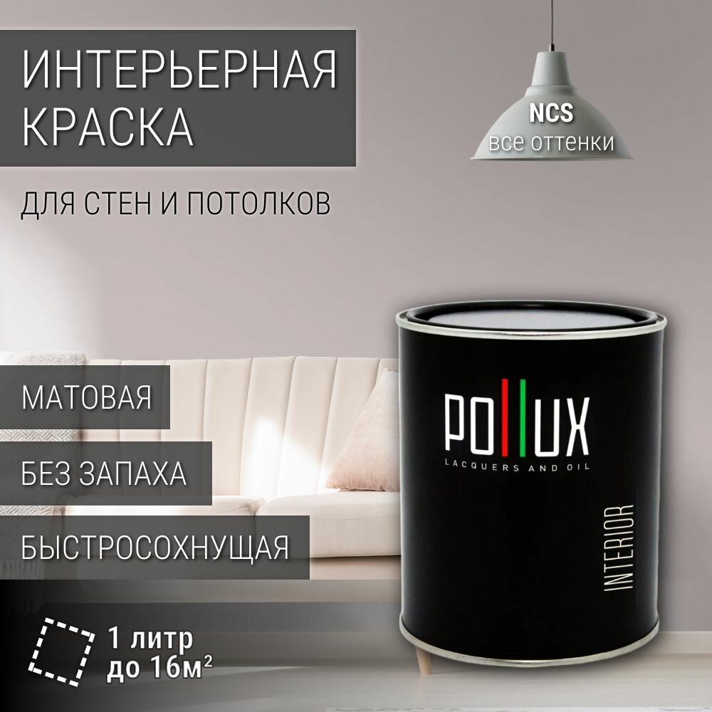Краска моющаяся интерьерная для стен и потолков, Pollux INTERIOR без запаха, быстросохнущая, акриловая, матовое покрытие, цвет NCS S 2005-R10B, 1л. информация: