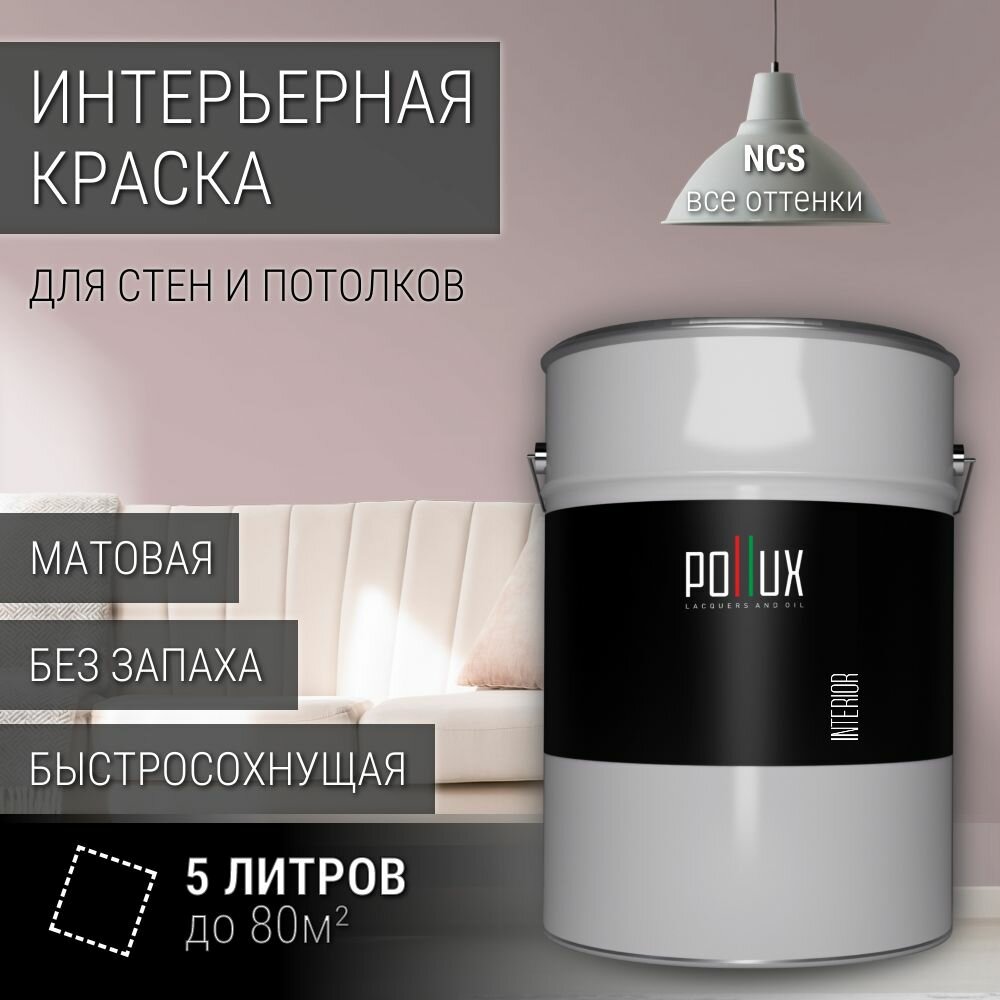 Краска моющаяся интерьерная для стен и потолков, Pollux INTERIOR без запаха, быстросохнущая, акриловая, матовое покрытие, цвет NCS S 2010-R10B, 5л. информация:
