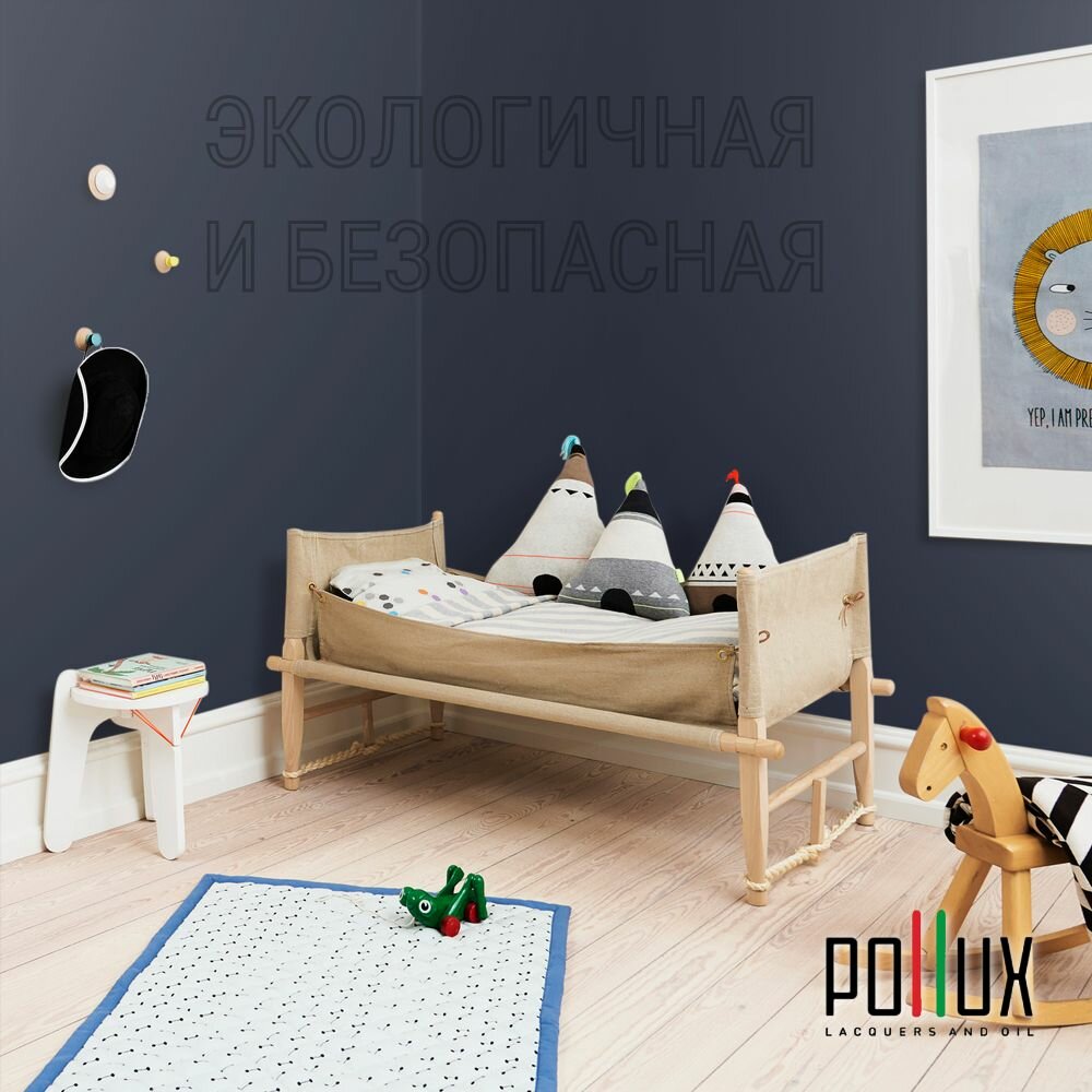 Краска моющаяся интерьерная для стен и потолков, Pollux INTERIOR без запаха, быстросохнущая, акриловая, матовое покрытие, цвет NCS S 8010-R70B, 1л. информация: